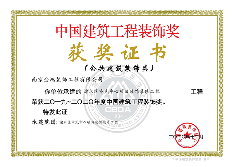 溧水區(qū)市民中心項(xiàng)目裝飾裝修工程榮獲2019-2020年度“中國建筑工程裝飾獎(jiǎng)”
